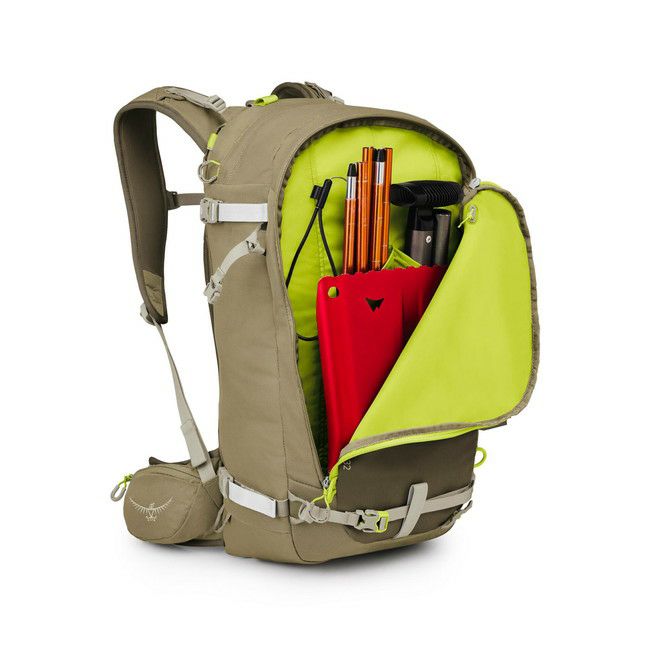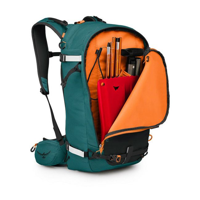 スキーは斜め掛けやAフレームでも装着可能、もちろんスノーボードも装備可能。アバランチポケットには目立つカラーのジッパーを採用し、緊急時でもアバランチギアへの直感的なアクセスが可能です。ヘルメットキャリーやスキー/スノーボードアタッチメントポイントなど、雪山に特化した機能を備えています。