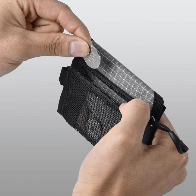 コインポケットは、視認性の高いメッシュを採用。大きめのジッパープルはストレスなくコインを収納できます。