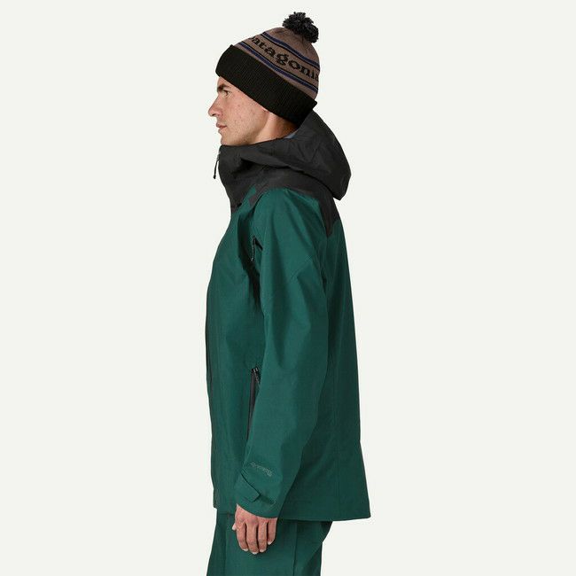 調節可能な固定式フードは伸縮性の隠しパネルを備え、フロントジッパーを完全に閉めたままヘルメットの上からも装着可能。フォーム入りのつばは悪天候下でも視界を確保