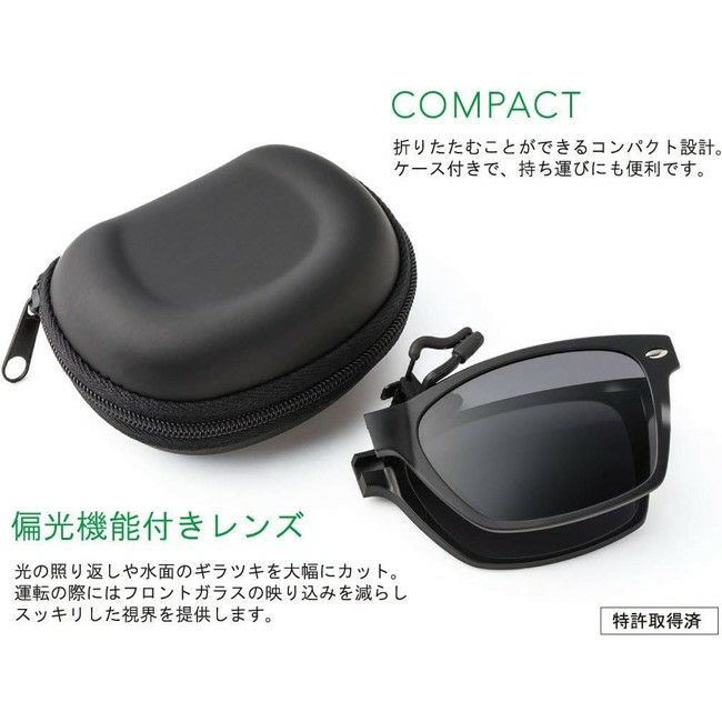 屋外でのレジャーやドライブ、旅行など 必要な環境で必要な時にだけ、サッと サングラスに切り変えられる。今までにない 機能性とファッション性を高めたクリップ オンサングラスです。