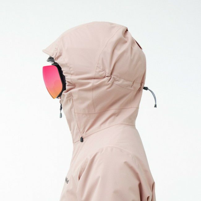 【特長】ライアクスルフード / フィット感を高める独自の立体パターン / 高めの襟元 / ジッパーが顔に当たらない仕様 / 立体裁断(肘) / アルパインカフ / アクアテクト®ジッパー / 滑り止め付きウインドスカート / リードインコード・システム(裾) / リフト券やICチップを入れられる左袖のポケット / スタッフバッグ付き / 取り外しできる口元パーツ