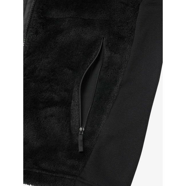 ボリュームのある毛足の長いフリースで保温性を確保。外襟、脇、袖下はストレッチ性のあるフリースを使用し、身体の動きにスムーズに追従します。ZIP IN ZIPシステムにより、フロントファスナー、袖口と首元のスナップボタンでアウターとの連結が可能です。