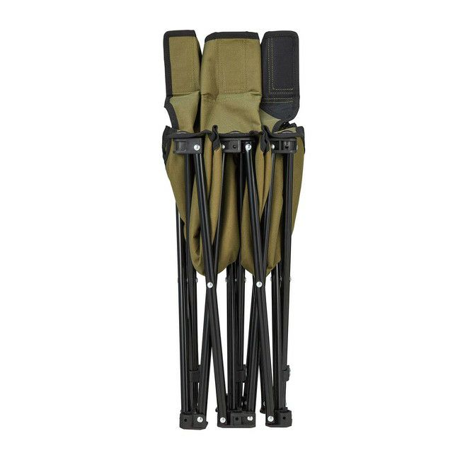 2人でゆったり座れるローチェア ■簡単収束収納 ●サイズ:約890×540×660(h)mm(使用時) 約230×160×680(h)mm(収納時) ●重量:約3.7kg ●耐荷重:約140kg(約70kg×2) ●材質:シート/ポリエステル フレーム/スチール ●付属品:収納ケース ●座面幅:890mm ●座面高:310mm