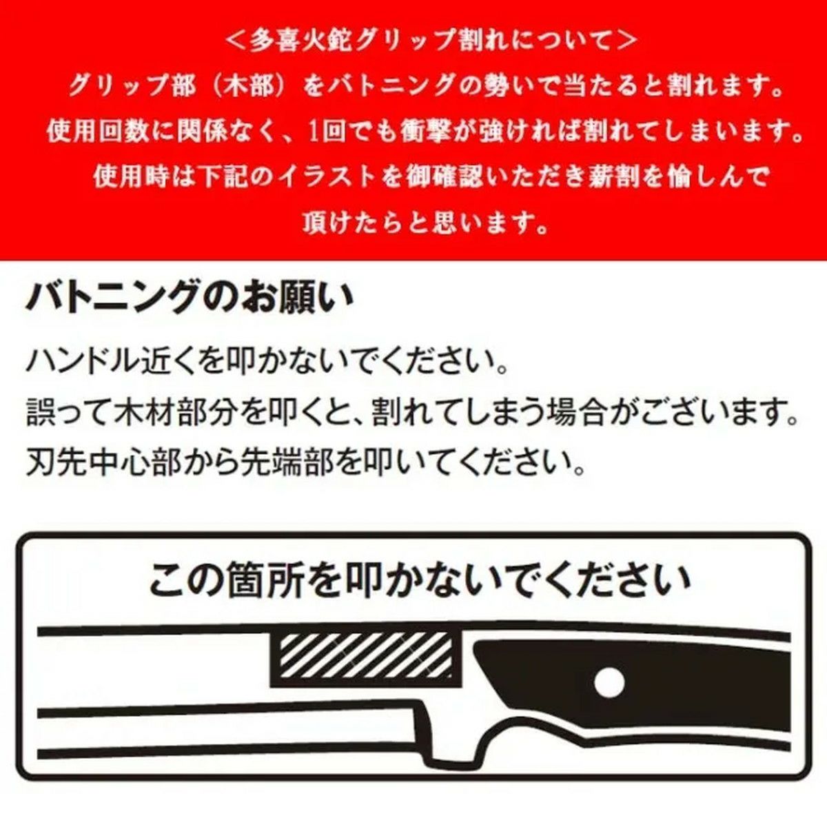 金属(ペグ用打ち込みハンマー等)で多喜火鉈や多喜火斧を叩くと壊れます。