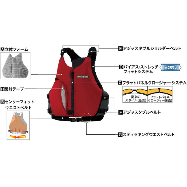 【特長】ポケット2個(右胸1、左胸1)、立体フォーム、センターフィットウエストベルト、フラットパネルクロージャー・システム、バイアス・ストレッチフィットシステム、アジャスタブルショルダーベルト、アジャスタブルベルト、スティッキングウエストベルト、反射テープ
