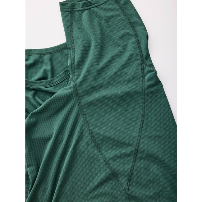 山を走るための最適なシルエットを追求したTシャツです。肩の可動域を妨げないラグランスリーブで、ストレスなく腕が振れます。 素材にはストレッチ性と通気性に優れたポリエステルを採用。グリッド構造の生地が肌離れを良くします。さらに、超撥水加工「Dry Action」を施し、積極的に汗を逃がしてドライな着心地をキープします。 肌当たりの良いフラットシーミングで、長時間の着用も気になりません。