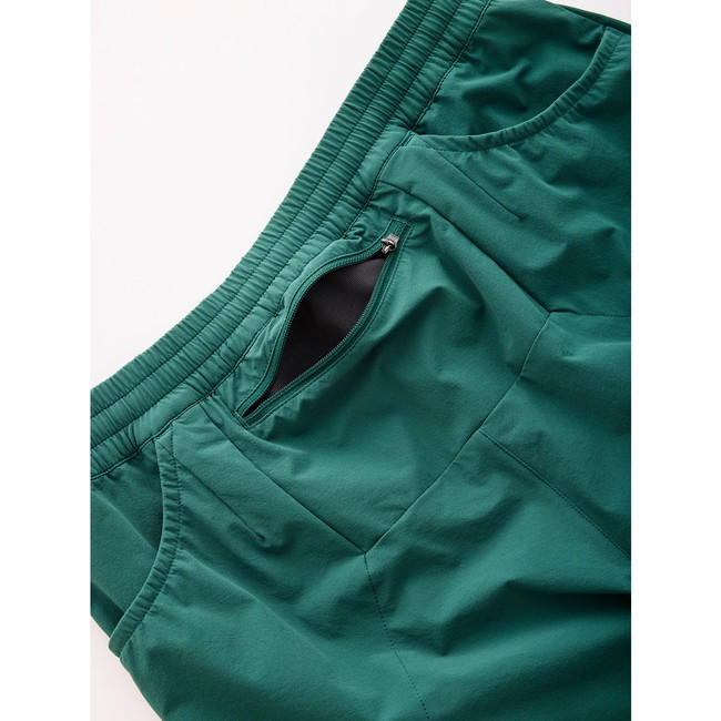 足さばきも軽快な九分丈のパンツです。 軽量で伸縮性に優れる二重織りの薄手ソフトシェルを使い、前後で生地の長さを変えたシンプルで自然な立体裁断を採用しています。 素材とデザインによるストレスのない動きやすさに加えて、ヒップ中央と両サイドの使いやすいポケットもポイントです。サイドポケットは深さも十分にあり、ソフトフラスクや行動食、地図なども入れられます。