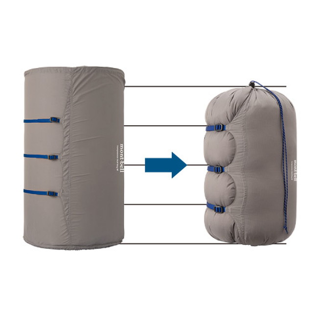 スリーピングバッグと着替えなどを一緒に詰め込んだり、冬季登山でスリーピングバッグを2重にして使用したりする際に、効率的に圧縮できます。