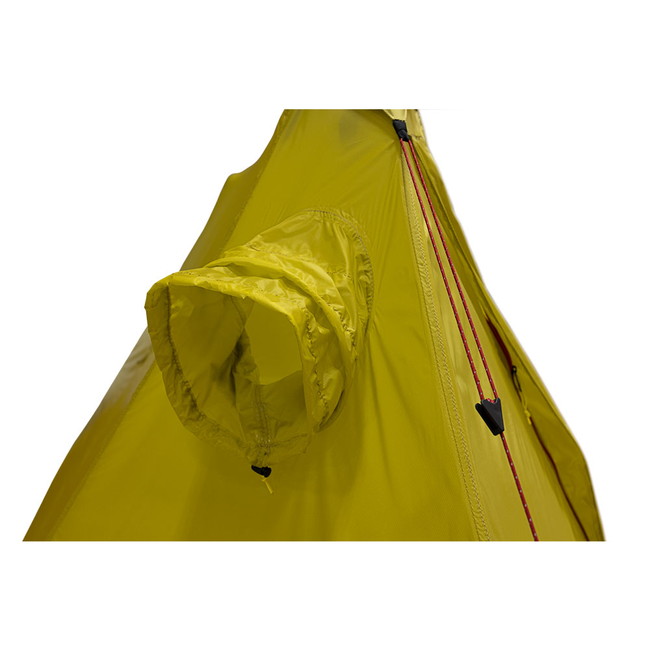 トレイルシェルター2 前面・ベンチレーターにはリング芯が入っていてモスキートネットの取り付けが可能