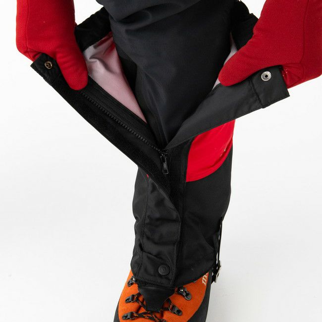 積雪期の使用を想定し、アイゼンやスノーシューで破れやすい足内側の広範囲を高強度エッジガードでカバーした膝下丈のモデルです。ジッパーには上下どちらからも開閉できるダブルスライダーを使用しています。