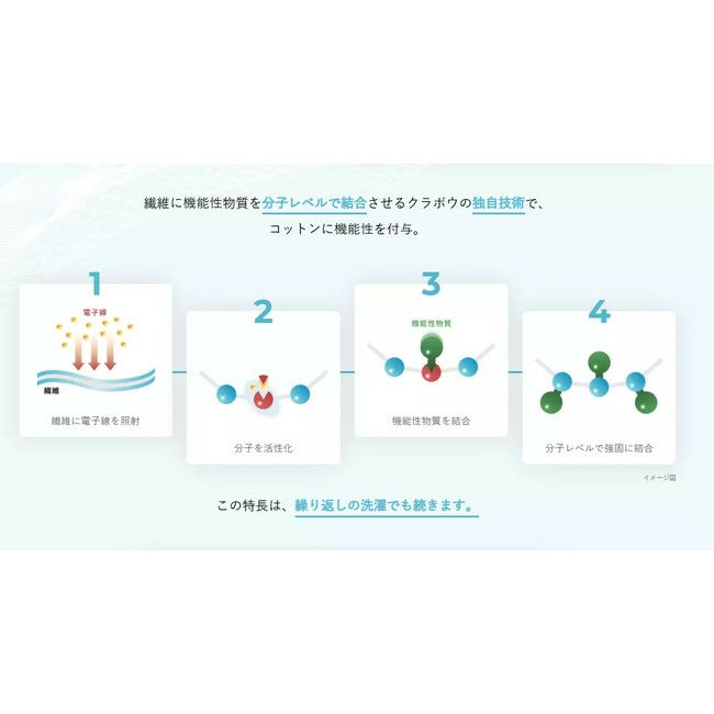 生地表面に付着した汗などのニオイ成分を化学的中和反応の上で消臭【この機能は繰り返しの洗濯でも続きます。】