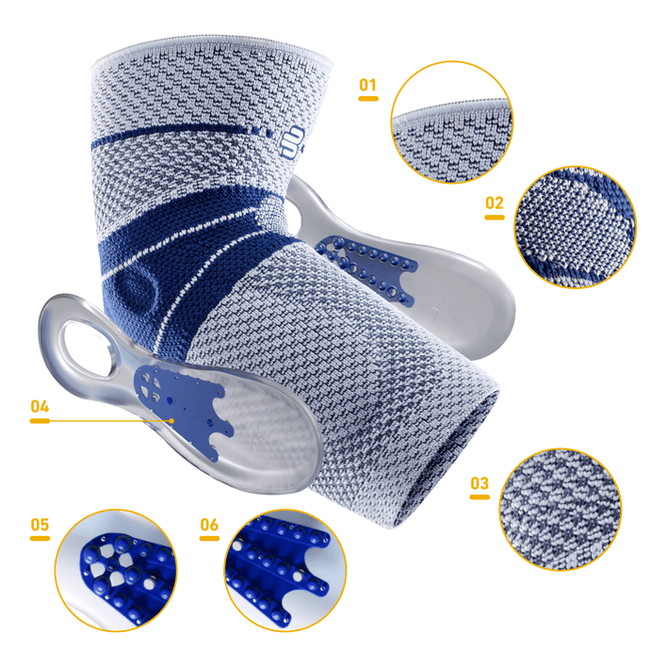 • 肘の形状に沿ったシリコーンパッドが肘関節を安定させます。