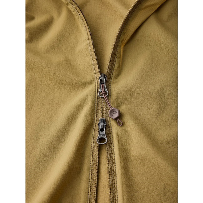 リサイクル66ナイロン素材で、WIND RIVER HOODYとWIND RIVER PANTで10年以上使っていた素材をこの素材に変更しました。防風性と通気性のバランスは従来のまま、耐摩耗性、引裂強度、発汗時の肌離れの良さなどが大きく向上しています。