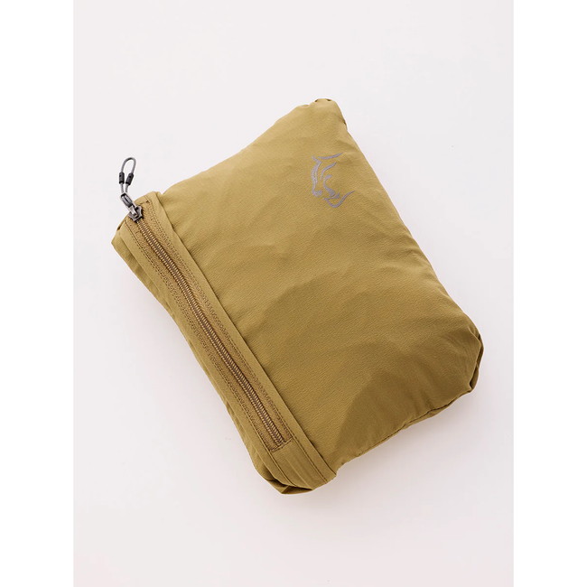 右腰背面のポケットにまとめて収納できるパッカブル仕様。内側のスライダーにはループを備え、カラビナなどにフックして携行できる。
