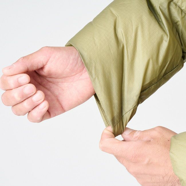 中綿には厳しい基準で選別された800フィルパワーのホワイトグースダウンを使用しています。撥水加工を施しているので汗や雨など湿気の影響を受けにくくロフトを維持することができます。