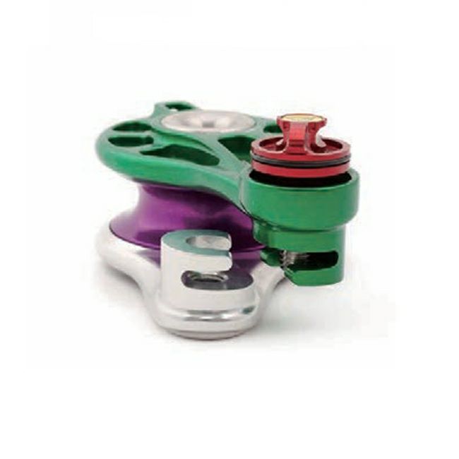 約700gと軽量、トップアンカーに最適なサイズ感です。シェーブとサイドプレートが一体になったよ うなデザインはロープにやさしく、シェーブ自体も最大限大きくすることでロープへのダメージを抑えます。Lサイズ同様シェーブ中心に貫通穴があることで、複雑になりがちなリギング構成をシンプルにします。