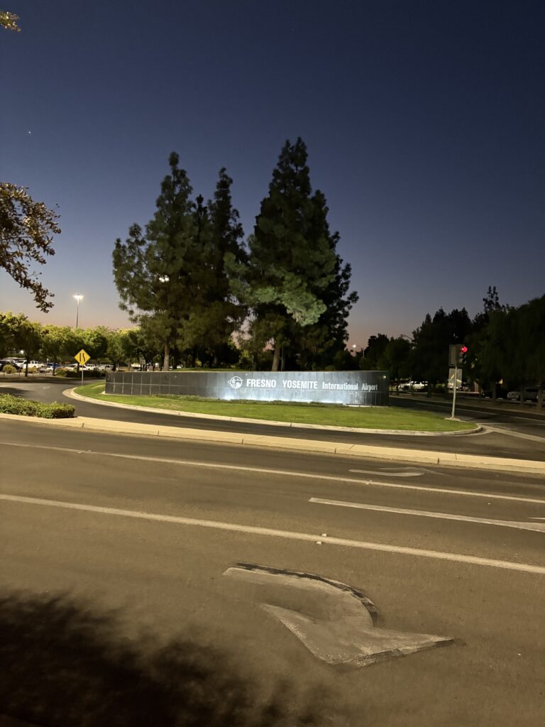 早朝、ヨセミテ行きのYARTS(バス)に乗るために、フレズノ・ヨセミテ国際空港に徒歩で向かいます。