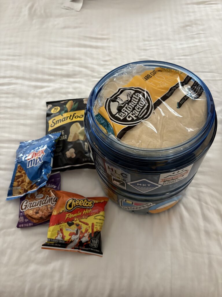 購入した食料をベアキャニスターに。写真を撮るのを忘れてしまいましたが、インスタントラーメンを粉々に砕いたり、個包装を全て捨ててコンパクトにまとめたりとさまざまな工夫をして、テトリス状態にぎっしりと詰め込みます。一番上はトルティーヤ、ジャストサイズです。電車で欲張って貰ってきたフリースナックは入りませんでした。今後しばらくはシャワーに入れないので念入りに身体を洗って就寝。
