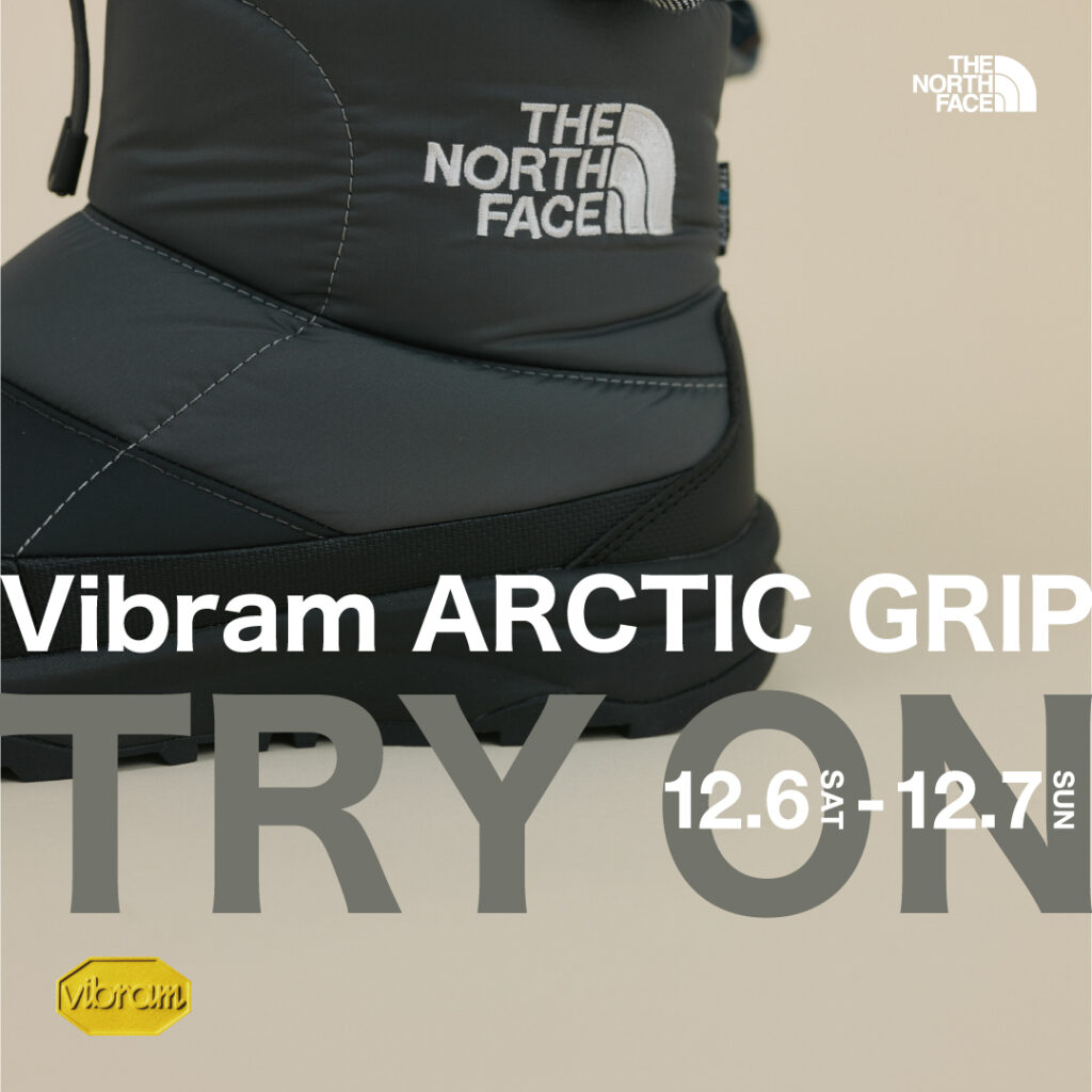 雪道・アイスバーンでも滑りづらいヴィブラムのアークティックグリップの店内氷上体験会を行います。