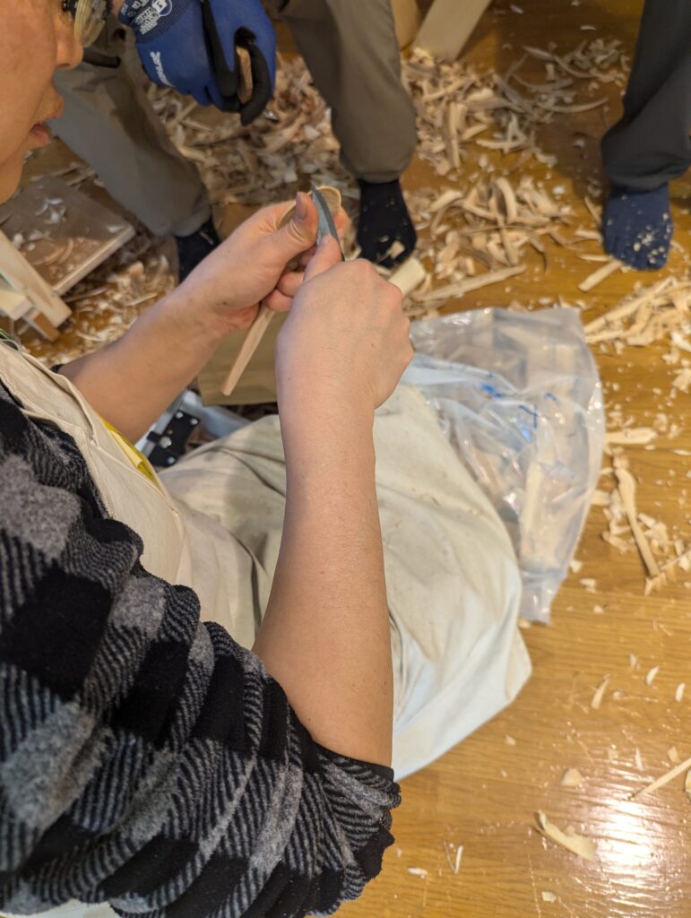 カービングナイフやドローナイフを活用してどんどんカタチになっていく。