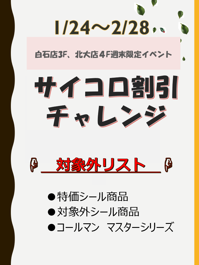 秀岳荘白石店3階と北大店4階キャンプ用品コーナーで開催!
