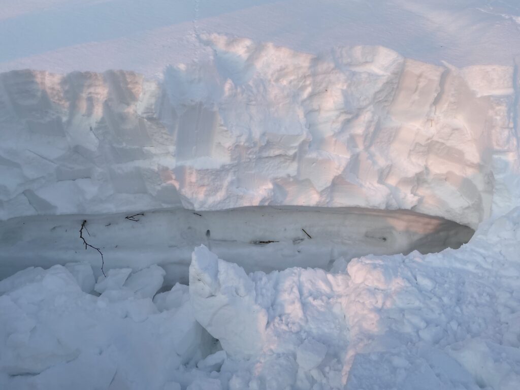 縦180㎝、横160㎝の積雪があり。雪洞泊はこちらに決定!