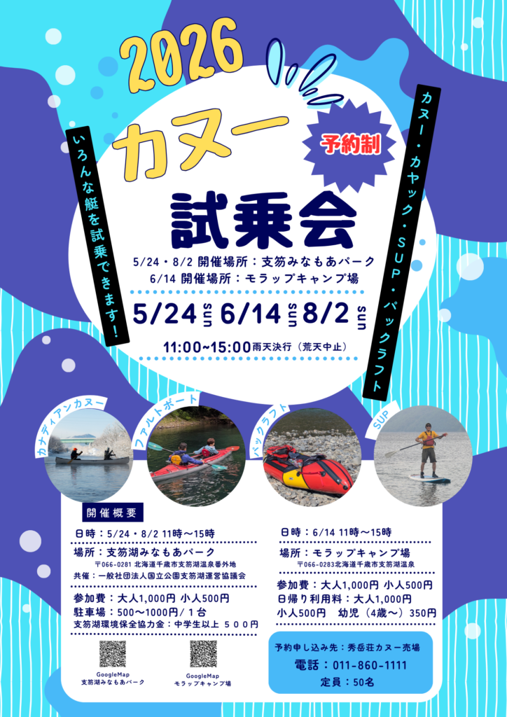 2026年のカヌー・カヤック・SUP試乗会の日程が決まりましたのでお知らせします。