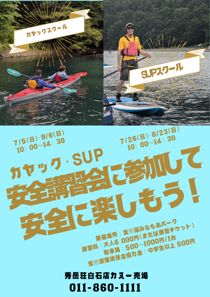 カヤック・SUPを当店で購入していただいた方、または自艇をお持ちの方向けの講習会を開催します。これから始める方、ステップアップしたい方、ご参加お待ちしております。