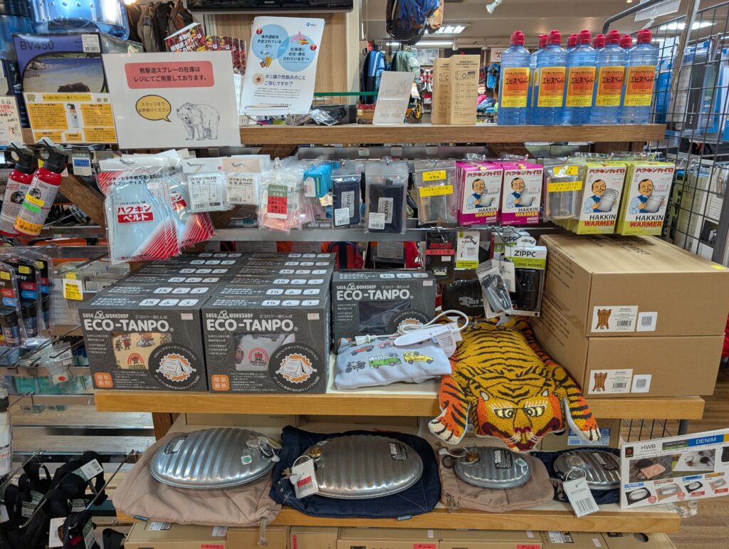 店頭にはカイロ、湯たんぽ、
