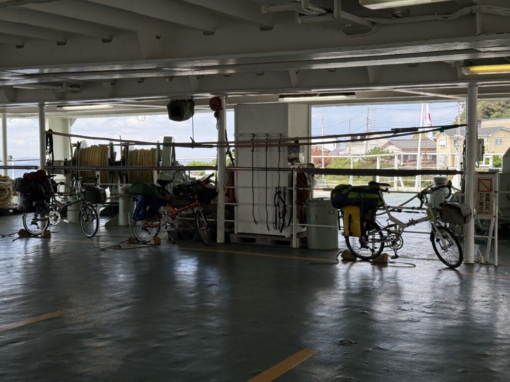 自転車は駐車場の隅に固定 海が荒れて車両が倒れないようにする配慮