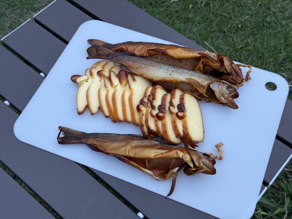 この日の為に仕込んだ燻製ニジマス、燻製アメマス(北海道イワナ)燻製チーズ