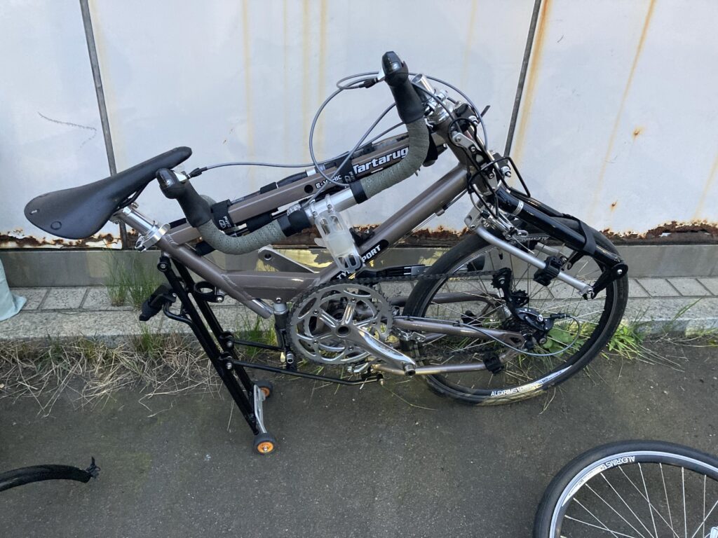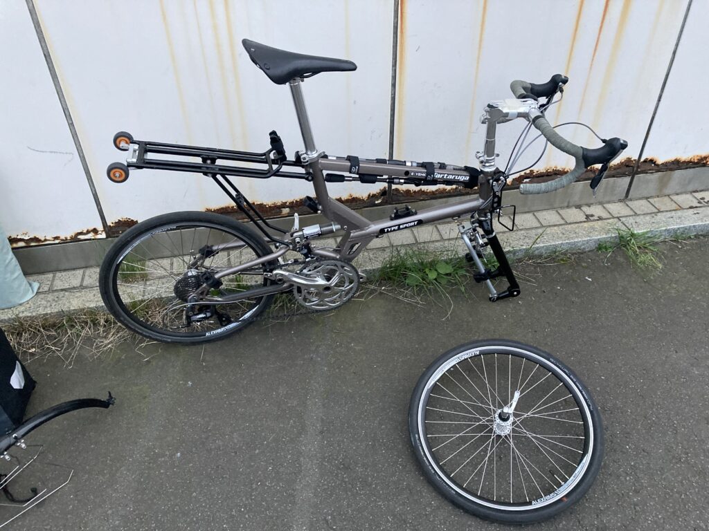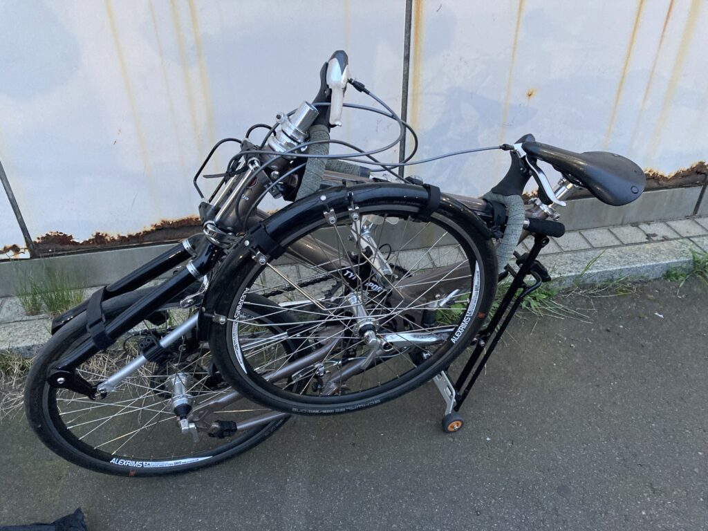 車体左側にフロントホイール、前後フェンダーを固定して折りたたみ完了です♪