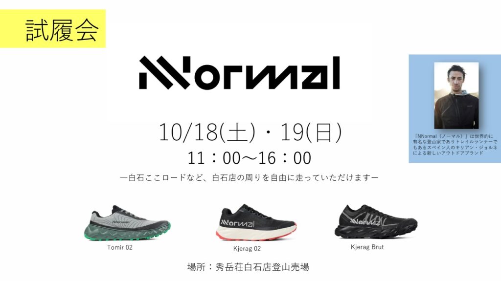 白石店の登山コーナーでは、先日から「NNormal(ノーマル)」のトレイルランニングシューズのお取り扱いを始めました!!店内でご覧になった方もいらっしゃるでしょうか。