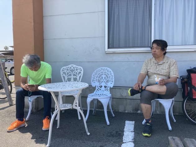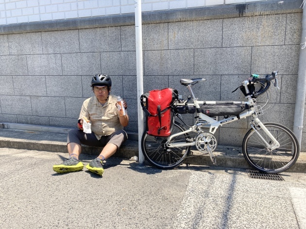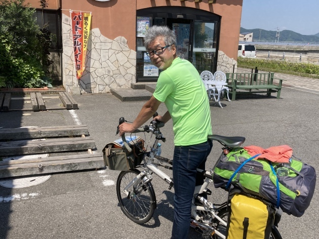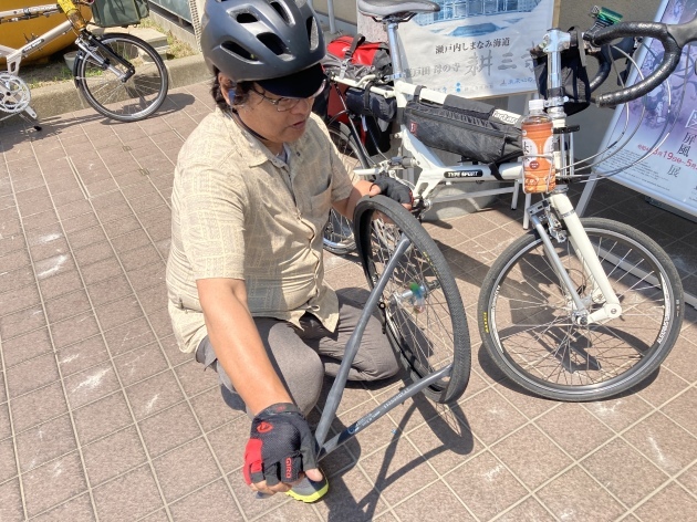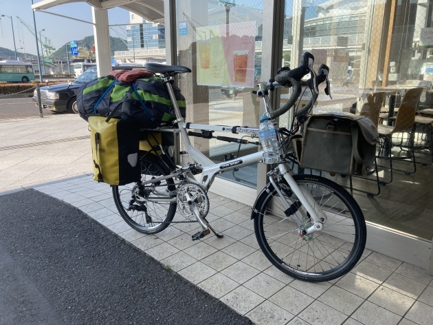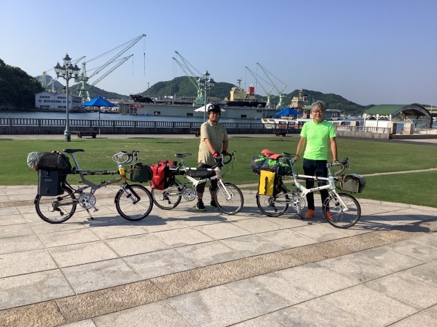翌日尾道駅前でTartaruga 吉松さん(右)自転車ショップFARMの小田さん(左)と合流今回の自転車キャンプツーリングにお付き合いしていだだける事になりました。FARMさん岡山県倉敷市の折り畳み自転車の有名なお店です。