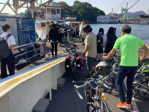 ロードレーサーで来られた方、向島の高校に通学される方などを乗せ対岸の島に向かいます。
