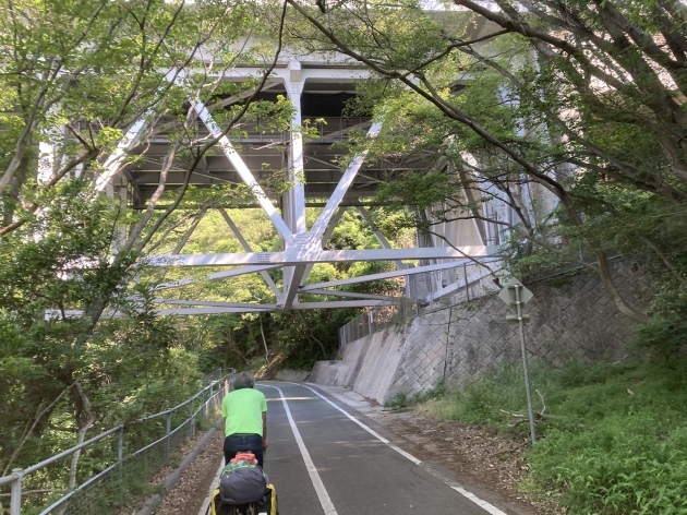 サイクリングロードを登りいざ因島大橋へ