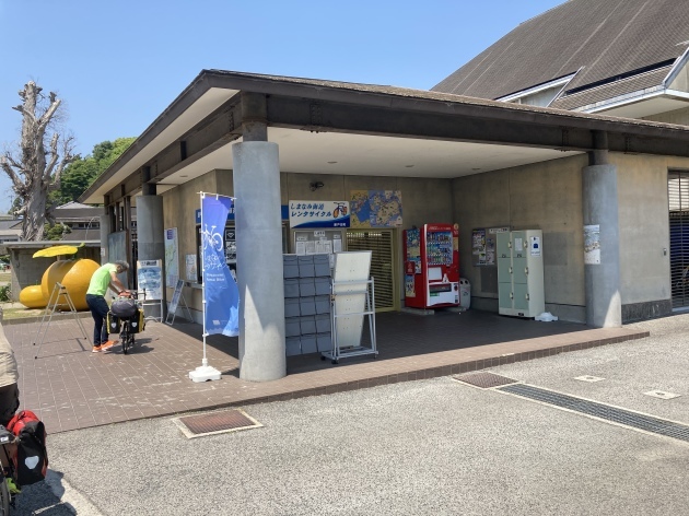 すぐ近くにレンタサイクルステーションがありポンプをお借りしました。携帯ポンプもあったのですがサイクリングコースのコンビニや自転車関連施設には通常サイズのポンプが常備されていてお借りすることができます。(コンビニの横の看板にポンプありますと書いてました。)自転車に優しい配慮ありがとうございます。