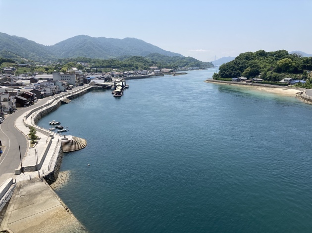 数100メートルの距離にある島ですが橋は無く行き来は昔から渡船のみ高速道路だけは橋が架かっています。