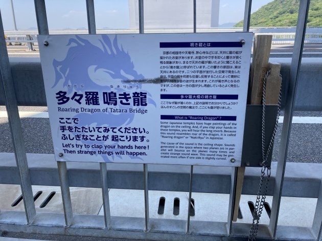 多々羅大橋の途中、渡られる際は是非この場所で手を叩いたり大声で叫んで見ましょうすごく感動しますよ❗️