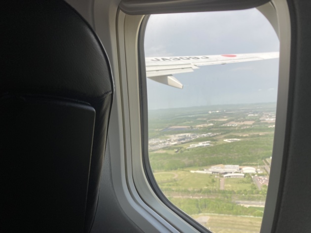 今回の飛行機はJAL 荷物10kg預け荷物20kg約6kg重量オーバーだったで追加料金を支払いました。1kg400円なので2400円の出費 (涙)無事搭乗手続きを終え広島空港へ飛び立ちます。